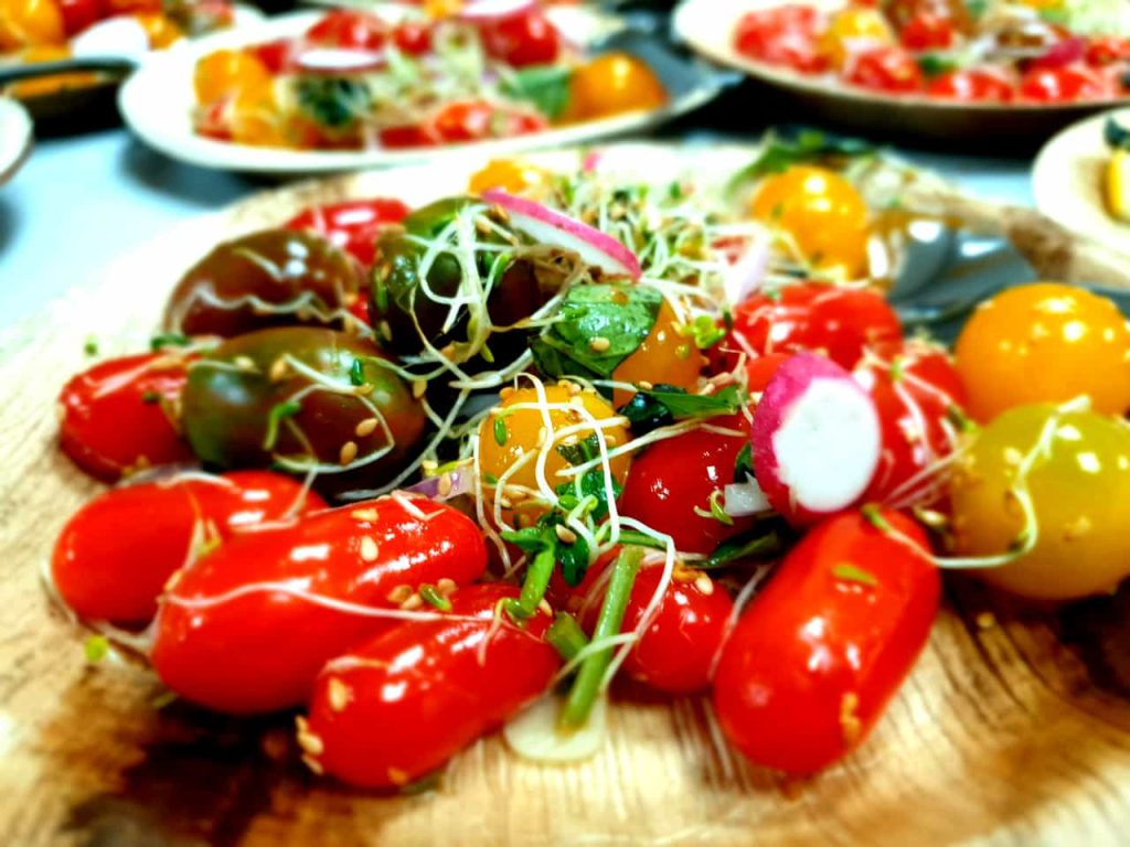 סלט מטבוחה – מעגבניות טריות, רצועות פלפל חריף ושום טרי