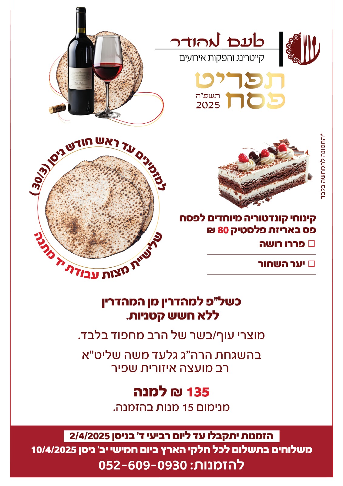 פסח שמח מקייטרינג טעם מהודר. גם בפסח הזה, אנו מזמינים אתכם לחגיגה של טעם, ריח